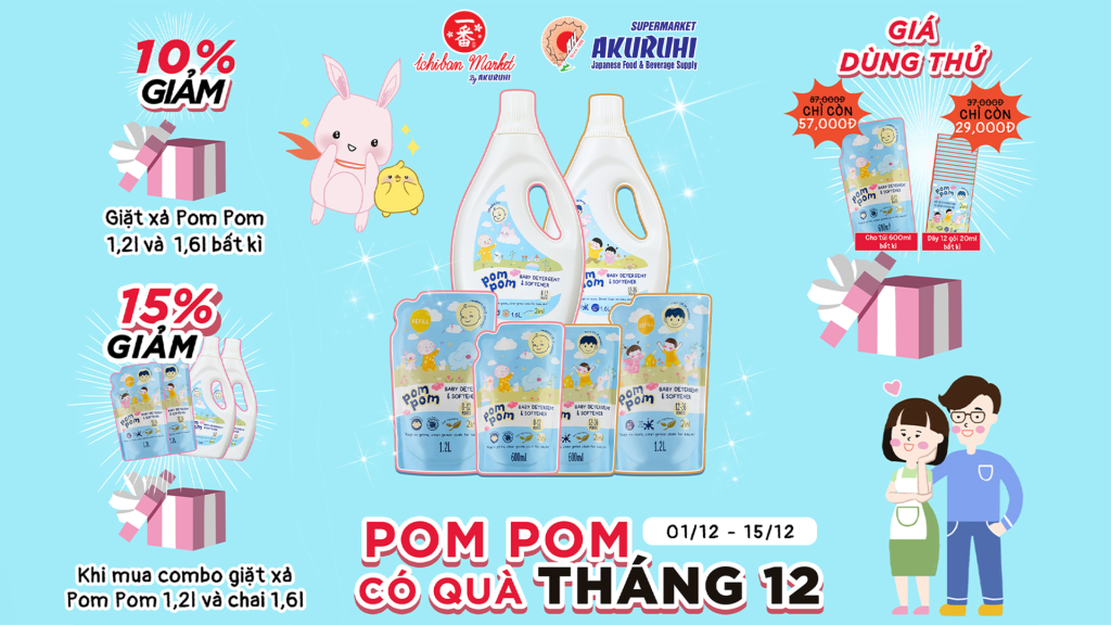 Nước giặt xả Pom Pom dành cho trẻ em nay đã có mặt tại siêu thị Ichiban. Với thành phần lành tính, an toàn cho làn da nhạy cảm của bé, phù hợp cho cả trẻ sơ sinh thì mẹ đừng bỏ qua nhé. Sản phẩm này hiện đang có ƯU ĐÃI GIÁ DÙNG THỬ …