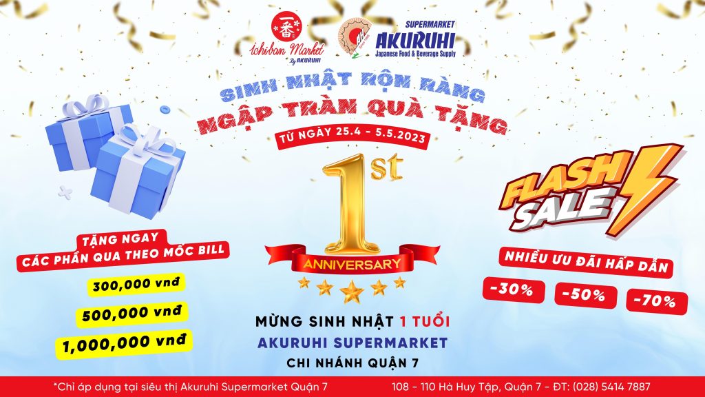 VÀ HÔM NAY DUY NHẤT TẠI CHI NHÁNH SIÊU THỊ NHẬT HÀ HUY TẬP. QUẬN 7, TP HỒ CHÍ MINH THÁNG 4 SINH NHẬT, TRAO QUÀ THẬT TRI ÂN Mừng kỷ niệm 1 năm thành lập siêu thị Nhật quận 7 – Akuruhi Supermarket Hà Huy Tập quận 7, Akuruhi gửi đến quý khách hàng …