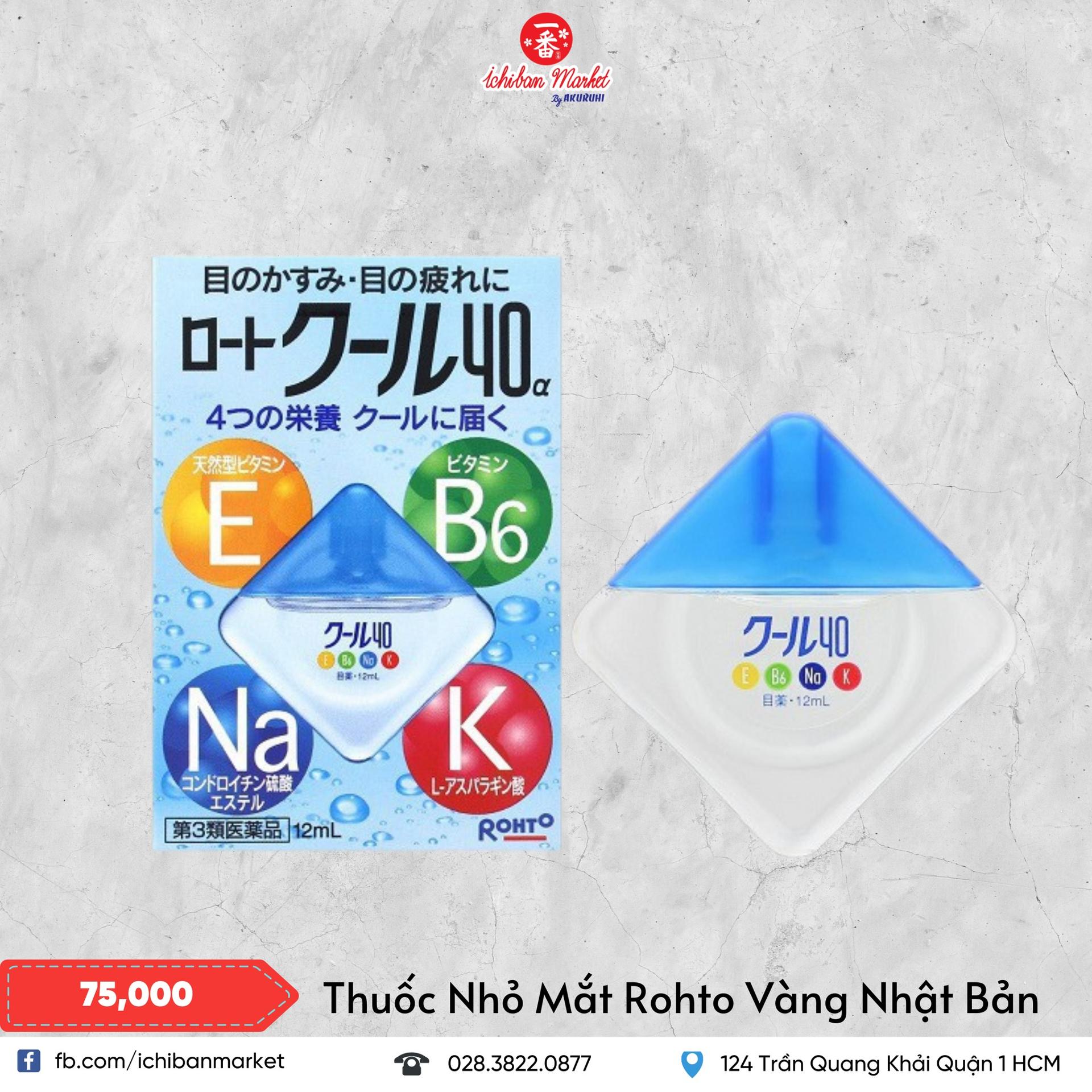 Nước nhỏ mắt Rohto Nhật có 2 loại: Màu xanh (Cool 40 Rohto Menthol) – Màu vàng (Vita 40 Rohto Mild)