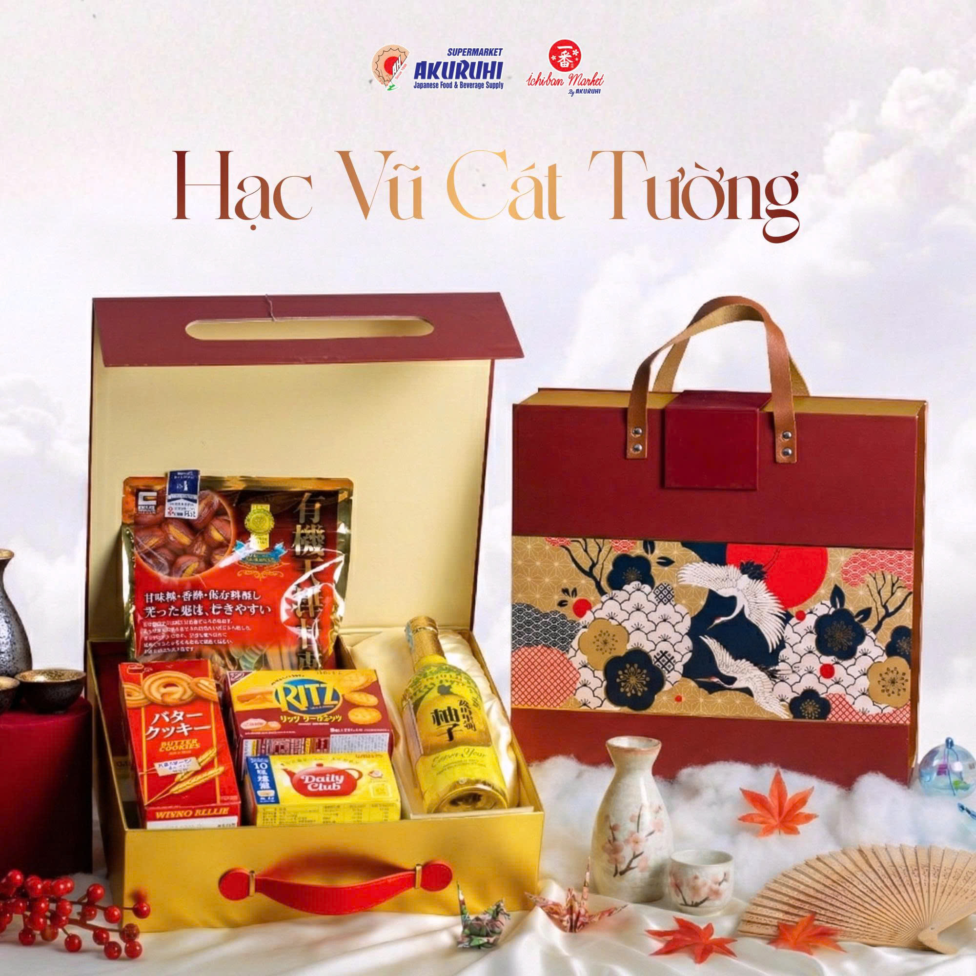 Hộp Quà Tết Nhật Bản 2026: SET 3 “Hạc Vũ Cát Tường” – Rượu Dứa, Bánh Bơ Bourbon & Trà Nitto – Hạc Vũ Cát Tường