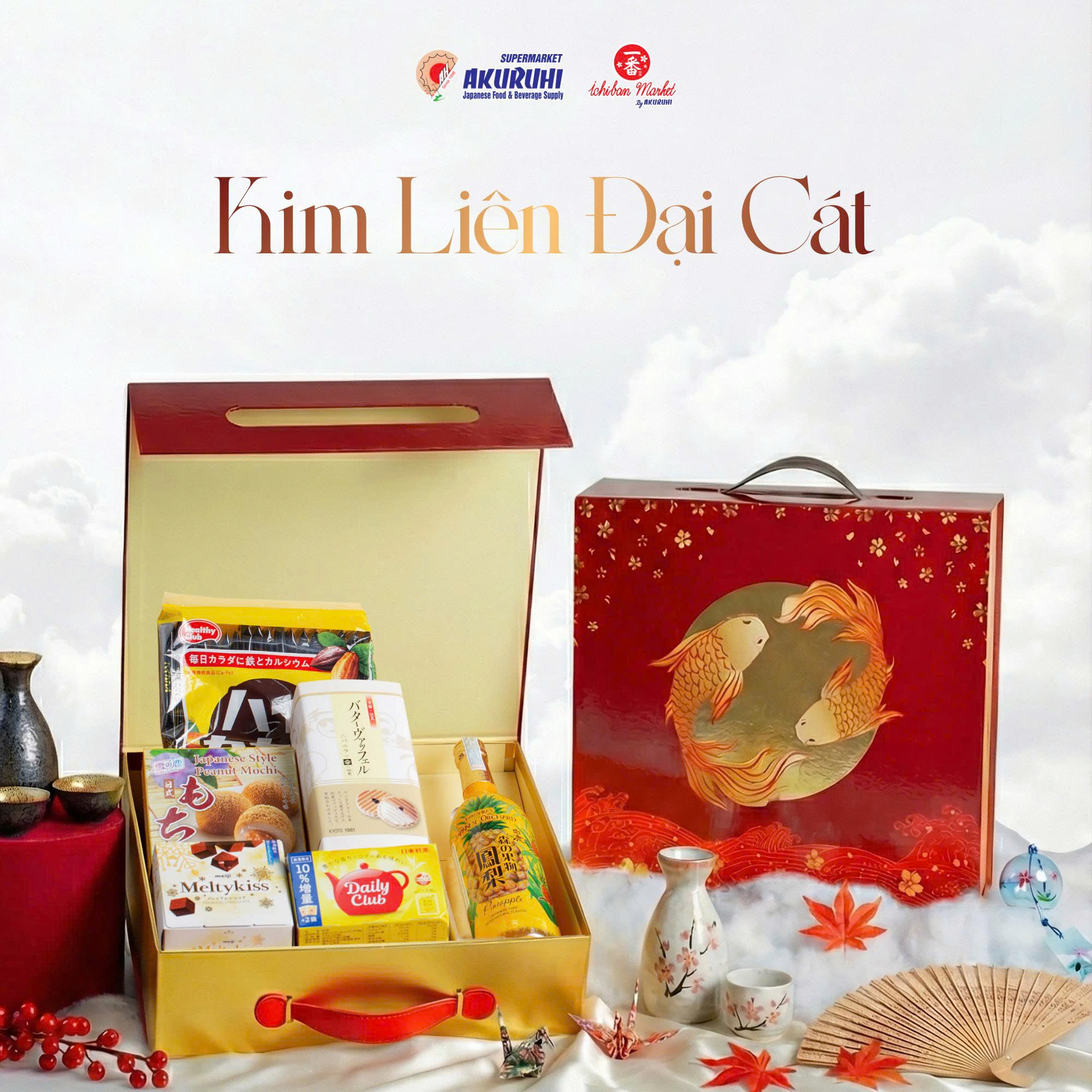 Hộp Quà Tết Nhật Bản 2026: SET 7 “Kim Liên Đại Cát” – Món quà tinh tế mang ý nghĩa Tài lộc, Phú quý
