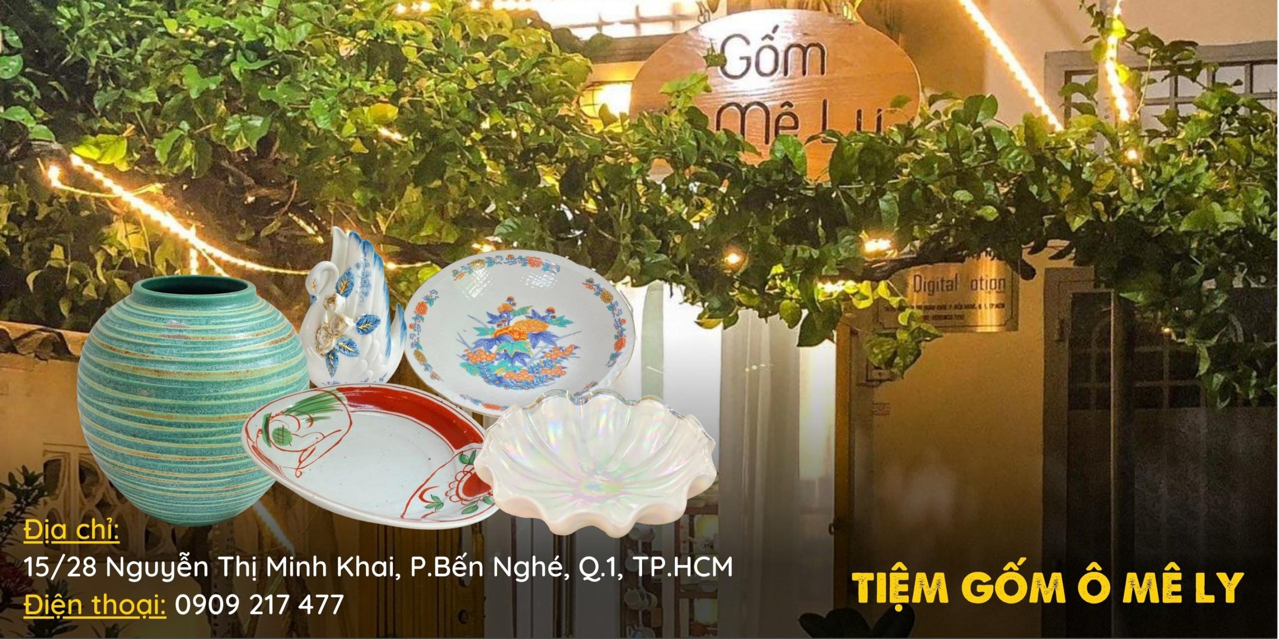 Tiệm có đầy đủ từ ly, tách, chén, dĩa, ấm trà, bình hoa, đồ trưng bày decor, .. gốm Nhật và gốm Âu, tinh tế chất lượng. Nơi đây phù hợp với đa dạng nhu cầu từ trang trí đến gia dụng, bạn yêu thích phong cách Nhật Bản và cả Châu Âu thì đến ngay gốm sứ Ô Mê Ly mua sắm nhé. Giá dao động từ 150.000 đồng